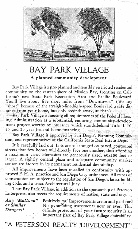 We are starting a collection of photos of the Bay Park area to share on this web site. Here are a few from the beginning of residential development. If you have photos or other memorabilia you would like to contribute, please contact Russ.