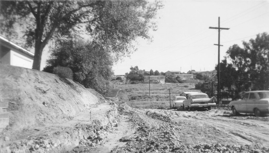 Looking Northwest towards future Clairemont Dr. with Bay Park Elementary in the center. |