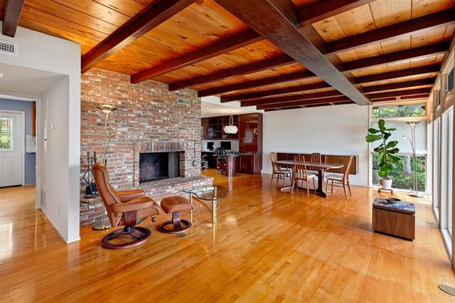 Mid Century Modern mini estate! 12,500 sq ft double lot! Modern kitchen cabinets with Blue Pearl granite slab counter tops, stainless steel main and prep sink each with disposals, stainless steel appliances, stainless range hood, two pantries and hardwood floors! Living room with wood burning fireplace, floor to ceiling windows, open beams and hardwood floors! Family room with engineered flooring! Master bedroom suite with sitting area, wood burning fireplace, beamed ceilings and walk-in closet with custom organizers and cedar ceiling! Luxurious master bathroom with dual sink vanity, jetted tub and separate shower! Front yard view deck is accessible from living room and bedrooms! The view deck is engineered to accommodate a portable spa! Over sized two car garage with extra outside guest parking! New forced heater and air conditioner! New exterior lighting! Extra storage space throughout! Build-out an additional 300 sq ft of unfinished space on the lower level for more living square footage! Check out the Virtual Tour!